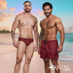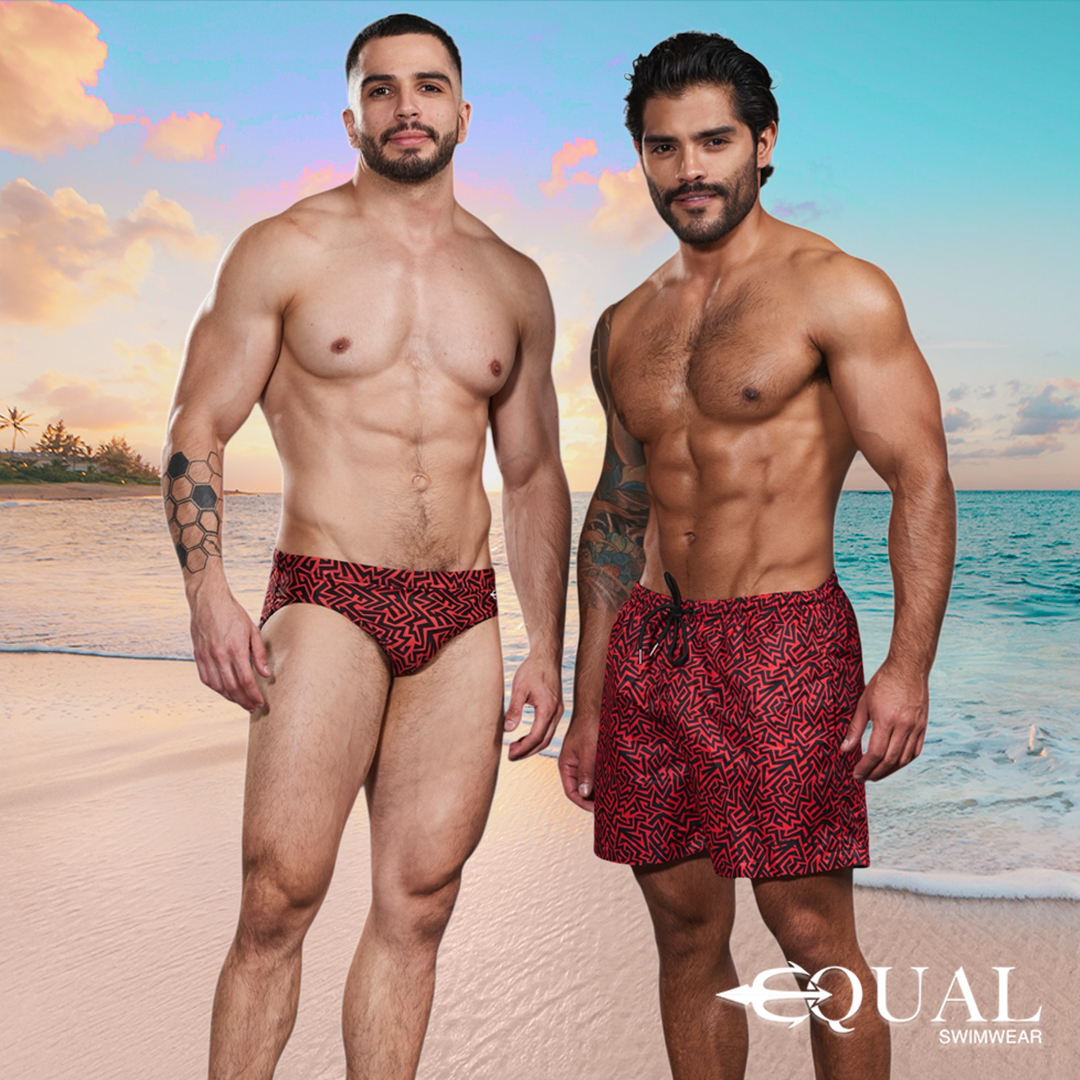 2 piezas de traje de baño para hombre de marca Equal Swimwear Short Brief, con mismo diseño POLIGONOS AZUL que te va a encantar